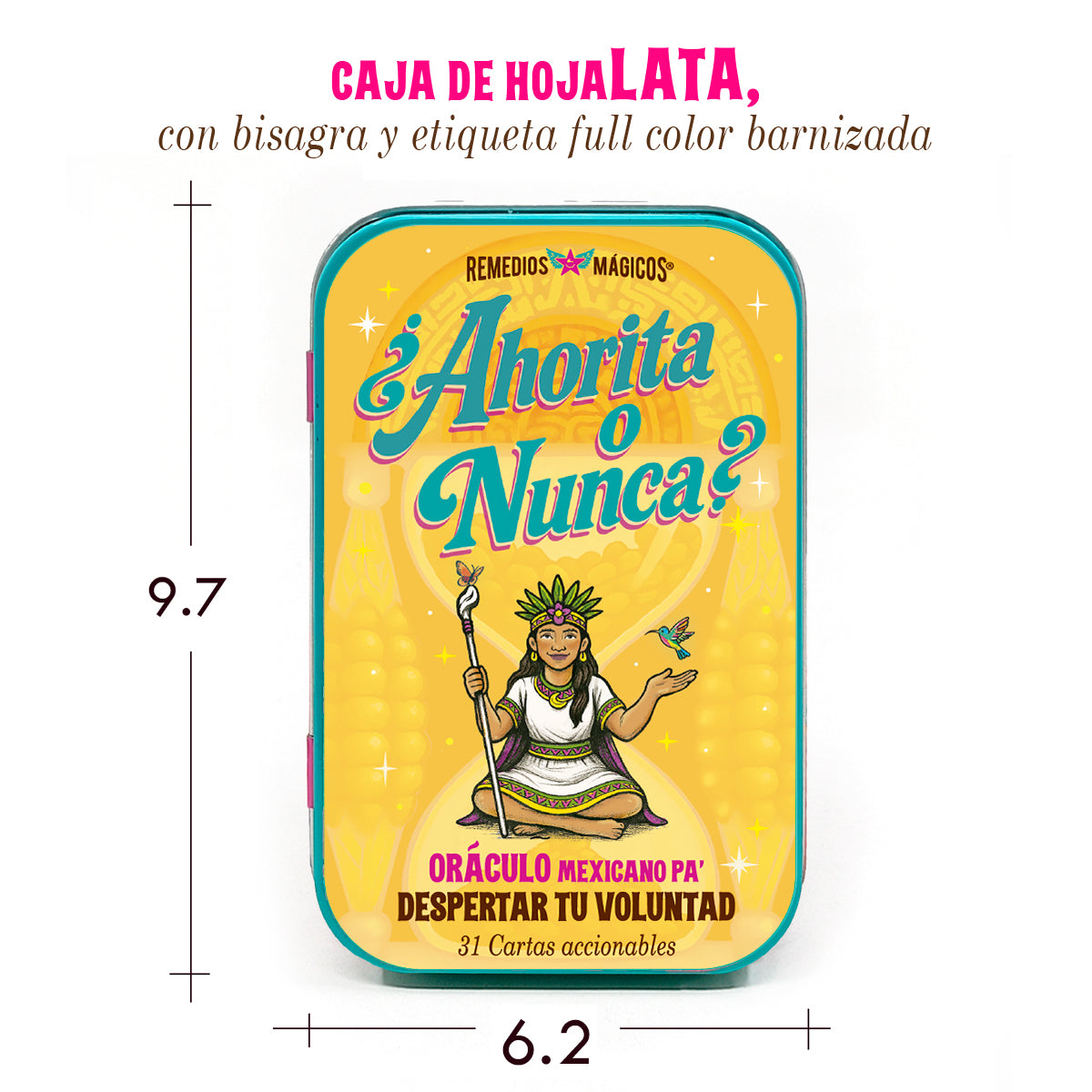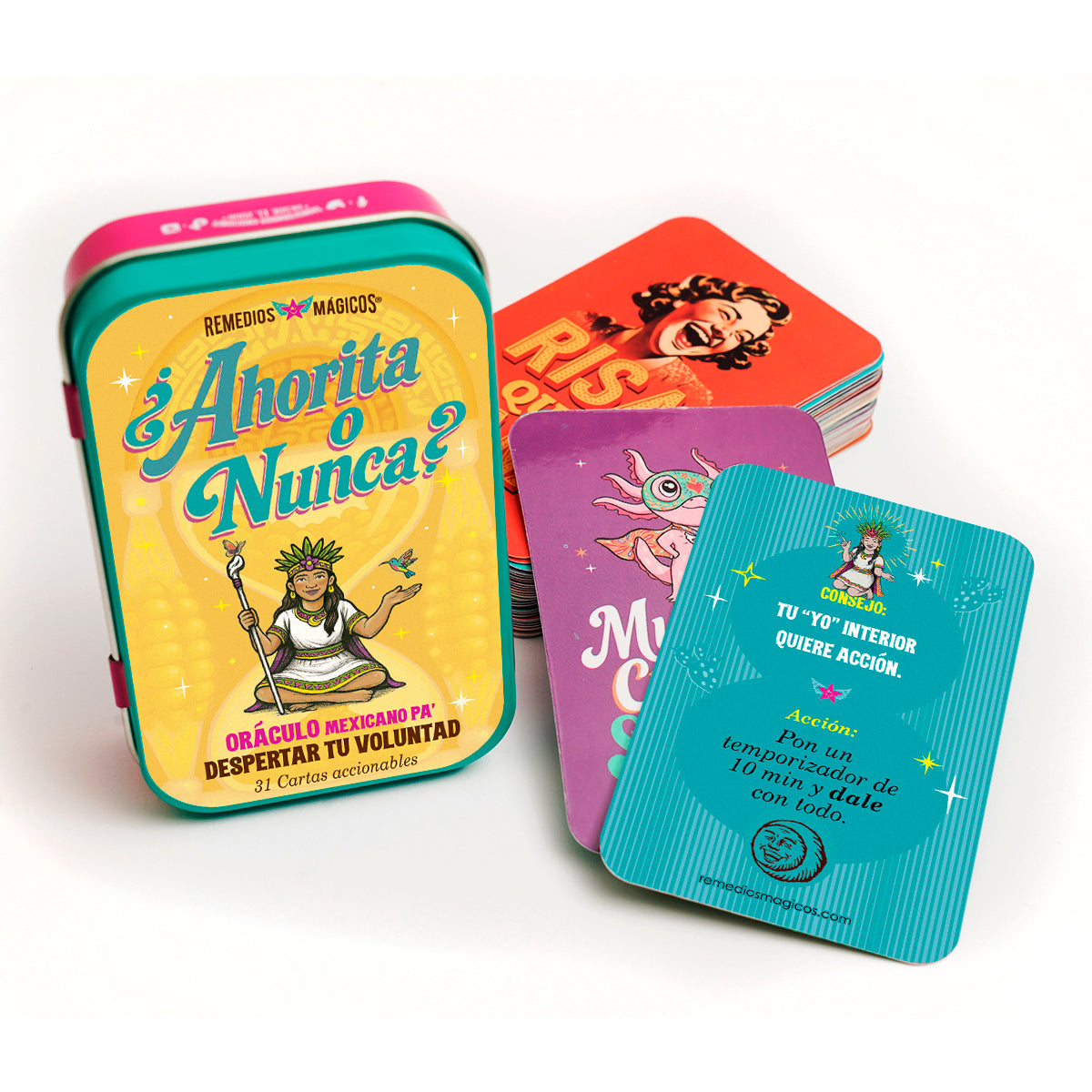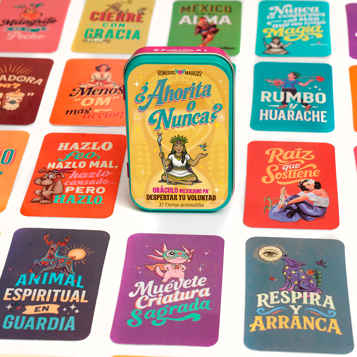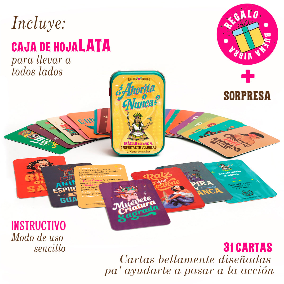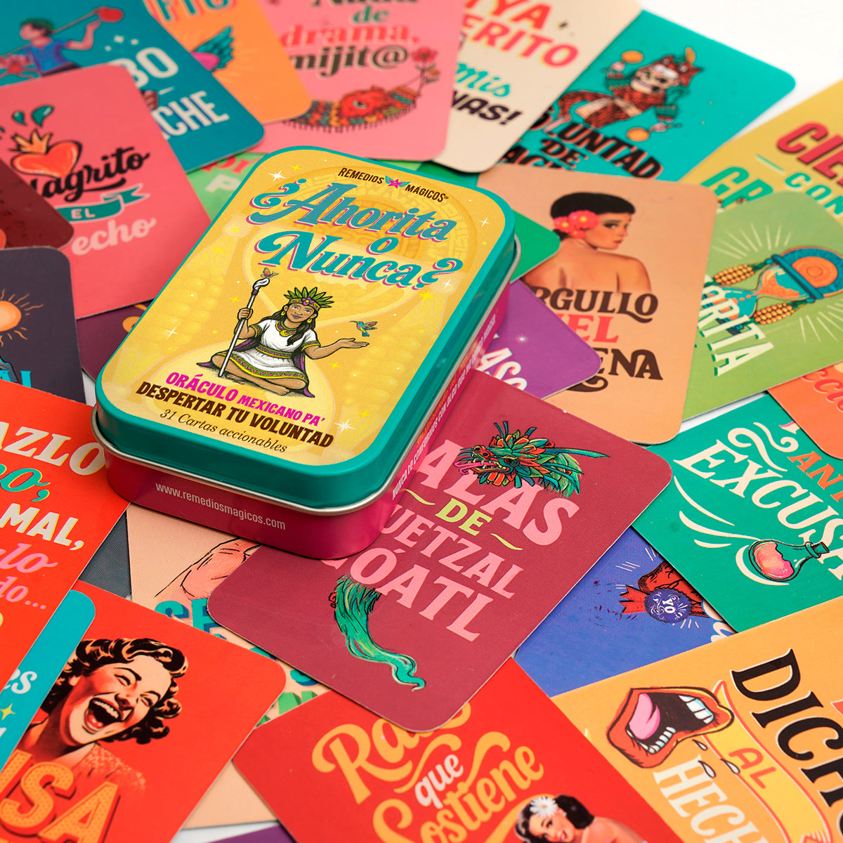 Este Oráculo es un empujón con humor y sabiduría mexicana que te invita a la acción, para convertir el “ahorita” en ¡YA!, pa’ que dejes de hacerte guaje, porque el “Ahorita” no cumple sueños; pero cada carta ¡sí!, DESPERTANDO TU VOLUNTAD con un consejo amoroso y un mini ritual mágico para moverte en 60 s.