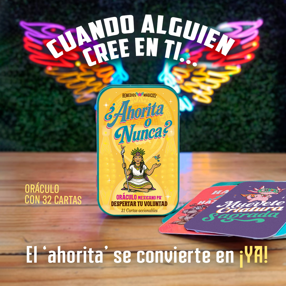 31 TARJETAS CON MENSAJES DEL UNIVERSO, CONSEJOS Y MINI RITUAL para conectar con tu voluntad, porque no es mañana ni después, es ¡YA EN CALIENTE!. Bellamente ilustradas con acabado brillante laminadas.
